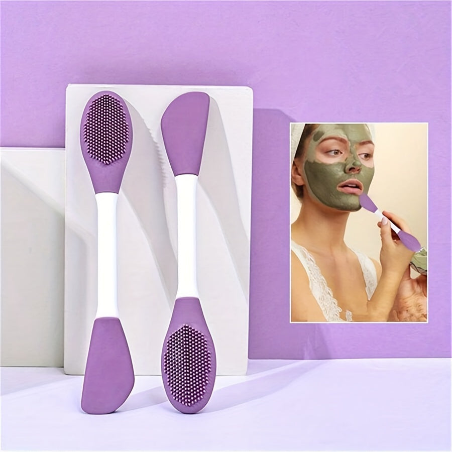 1pc Dual-Head Silicone Facial Cleansing Brush - Manual Face Mask Applicator and Cleansing Tool, Skin-Friendly Unscented for Masks, Essences, Face Creams, and Lotions